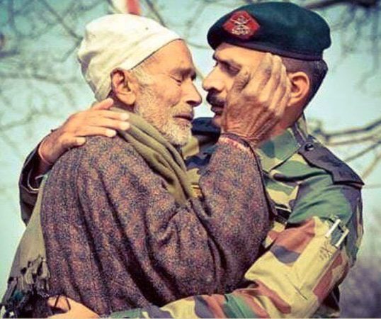 ಶ್ರೀನಗರ: ಕಾಶ್ಮೀರದಲ್ಲಿ ನಡೆದ ಉಗ್ರರ ವಿರುದ್ಧದ ಎನ್ ಕೌಂಟರ್ ನಲ್ಲಿ ಹುತಾತ್ಮನಾದ ಲ್ಯಾನ್ಸ್ ನಾಯಕ್ ನಾಜಿರ್ ಅಹ್ಮದ್ ವಾನಿ ಸಾವಿನ ಬೆನ್ನಲ್ಲೇ ದುಃಖತಪ್ತ ತಂದೆಯನ್ನು ಮತ್ತೋರ್ವ ಯೋಧ ಅಪ್ಪಿ ಸಮಾಧಾನ ಮಾಡುತ್ತಿರುವ ಫೋಟೋ ಈಗ ವೈರಲ್ ಆಗುತ್ತಿದೆ.