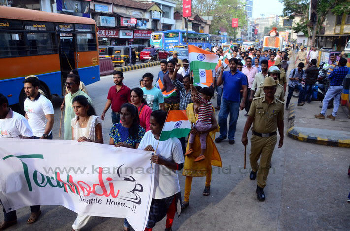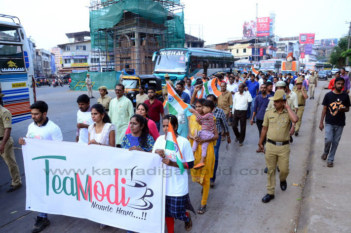 ಪ್ರದೀಪ್ ಕುಮಾರ್ ಅವರು ಜಿಲ್ಲಾ ಸಂಪರ್ಕ ಪ್ರಮುಖ್ ಭಾಸ್ಕರ್ ಅವರಿಗೆ ರಾಷ್ಟ್ರಧ್ವಜ ಹಸ್ತಾಂತರಿಸುವ ಮೂಲಕ ಕಾಲ್ನಡಿಗೆ ಜಾಥಾಕ್ಕೆ ಹಂಪನಕಟ್ಟೆಯಲ್ಲಿ ಚಾಲನೆ ನೀಡಿದರು. ಬಳಿಕ ಬೃಹತ್ ಸಂಖ್ಯೆಯ ಮೋದಿ ಅಭಿಮಾನಿಗಳ ಉಪಸ್ಥಿತಿಯಲ್ಲಿ ಹಂಪನಕಟ್ಟೆಯಿಂದ ಕೇಂದ್ರ ಮೈದಾನದ ವರೆಗೆ ಕಾಲ್ನಡಿಗೆ ಜಾಥಾ ನಡೆಯಿತು.