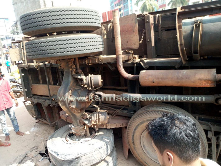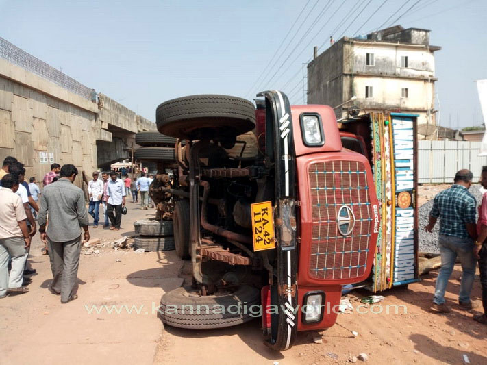 ಮರದ ತುಂಡುಗಳನ್ನು ಸಾಗಿಸುತ್ತಿದ್ದ ಲಾರಿಯನ್ನು ಟ್ರಾಫಿಕ್ ಪೊಲೀಸರು ನಿಲ್ಲಿಸಿ ಕೇಸ್ ಹಾಕಲು ಮುಂದಾದಾಗ ಚಾಲಕ ಲಾರಿ ರಸ್ತೆ ಬದಿಯಲ್ಲಿ ಲಾರಿ ನಿಲ್ಲಿಸಲು ಚಲಿಸಿದಾಗ ಲಾರಿ ಪಕ್ಕದಲ್ಲಿದ್ದ ಒಳಚರಂಡಿಗೆ ಮಗುಚಿ ಬಿದ್ದಿದೆ.