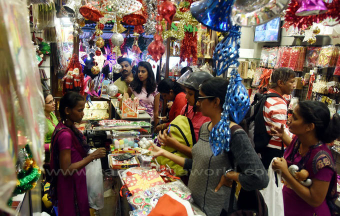 ಮಾರುಕಟ್ಟೆಗೆ ಬಗೆಬಗೆಯ ಅಲಂಕಾರಿಕ ಸಾಮಗ್ರಿಗಳು ಲಗ್ಗೆ ಇಟ್ಟಿದ್ದು, ನಗರದ ಅಂಗಡಿಗಳಲ್ಲಿ ಮಾರಾಟಕ್ಕಿಟ್ಟಿರುವ ನಕ್ಷತ್ರಗಳು, ಜಗಮಗಿಸುವ ಗೂಡುದೀಪಗಳು, ಕ್ರಿಬ್ಸ್ ಗೆ ಬೇಕಾದ ವಸ್ತುಗಳು, ಬೇಕರಿಗಳಲ್ಲಿ ಪ್ರದರ್ಶನಕ್ಕಿಟ್ಟಿರುವ ವಿವಿಧ ಆಕಾರದ ಕೇಕ್ ಗಳು ಹಾಗೂ ಬಗೆ-ಬಗೆಯ ತಿಂಡಿಗಳು ಯೇಸುವಿನ ಜನನದ ಆಗಮನವನ್ನು ಸಾರುತ್ತಿವೆ. ಇದಲ್ಲದೆ ಸಾಂತಾ ಕ್ಲಾಸ್ ಗೊಂಬೆಗಳು ಮಾರುಕಟ್ಟೆಯಲ್ಲಿ ಲಭ್ಯವಿದೆ. ಈ ಎಲ್ಲಾ ಸಾಮಾಗ್ರಿಗಳು ಸಾಮಾನ್ಯವಾಗಿ ಕೈಗೆಟಕುವ ದರದಿಂದ ಹಿಡಿದು ದುಬಾರಿ ಬೆಲೆಗಳಲ್ಲಿಯೂ ದೊರೆಯುತ್ತವೆ.