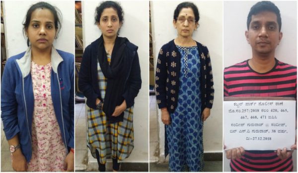 ಬಂಧಿತ ಆರೋಪಿಗಳನ್ನು ಸಂದೀಪ್ ಗುರುರಾಜ್, ಚಾರುಸ್ಮಿತ, ಅಮ್ರಿತ್ ಚೆಂಗಪ್ಪ ಮತ್ತು ಮೀರಾ ಚೆಂಗಪ್ಪ ಎಂದು ಗುರುತಿಸಲಾಗಿದೆ. ಇನ್ನೊಬ್ಬ ಆರೋಪಿ ಕತಾರ್ ಏರ್ ವೇಸ್ ಪೈಲೆಟ್ ವಿಶಾಲ್ ಸೋಮಣ್ಣ ತಲೆ ಮರಿಸಿಕೊಂಡಿದ್ದಾನೆ.