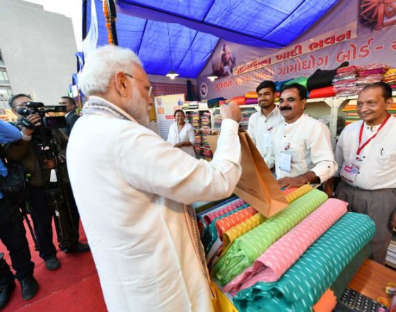 ವೈಬ್ರೆಂಟ್ ಗುಜರಾತ್ ಗ್ಲೋಬಲ್ ಶೃಂಗಸಭೆಯಲ್ಲಿ ಭಾಗವಹಿಸಿದ್ದ ಪ್ರಧಾನಿ ನರೇಂದ್ರ ಮೋದಿ ಅಲ್ಲಿ ನಡೆಯುತ್ತಿದ್ದ ಶಾಪಿಂಗ್ ಫೆಸ್ಟಿವಲ್ ಗೂ ಭೇಟಿ ನೀಡಿದ್ದರು. ಈ ವೇಳೆ ಖಾದಿ ಹಾಗೂ ಗ್ರಾಮೋದ್ಯೋಗ ಕೈಗಾರಿಕಾ ಮಂಡಳಿಯ ಸ್ಟಾಲ್ ನಲ್ಲಿ ಪ್ರಧಾನಿ ಸಾಮಾನ್ಯರಂತೆ ಜಾಕೆಟ್ ಖರೀದಿಸಿದರು ಅಷ್ಟೇ ಅಲ್ಲದೇ ರುಪೇ ಕಾರ್ಡ್ ನ್ನು ನೀಡಿ ವಹಿವಾಟನ್ನು ಪೂರ್ಣಗೊಳಿಸಿದ್ದಾರೆ.