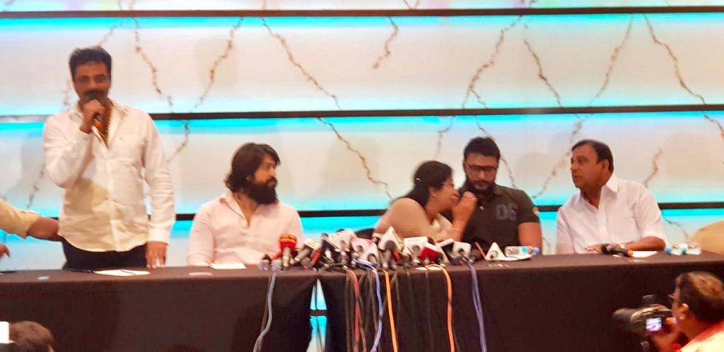 ಸುಮಲತಾ ಪರ ಸ್ಯಾಂಡಲ್ ವುಡ್ ನಟರು ಸಾಥ್ ನೀಡಿದ್ದಾರೆ. ಚಾಲೆಂಜಿಂಗ್ ಸ್ಟಾರ್ ದರ್ಶನ್, ರಾಕಿಂಗ್ ಸ್ಟಾರ್ ಯಶ್, ಹಿರಿಯ ನಟರಾದ ದೊಡ್ಡಣ್ಣ, ಜೈಜಗದೀಶ್ ಸುದ್ದಿಗೋಷ್ಟಿಯಲ್ಲಿ ಉಪಸ್ಥಿತರಿದ್ದು ತಾವು ಸುಮಲತಾಗೆ ಸಂಪೂರ್ಣ ಸಹಕಾರ ನೀಡುವುದಾಗಿ ತಿಳಿಸಿದರು. ಸುದ್ದಿಗೋಷ್ಟಿಯಲ್ಲಿ ಯಶ್, ದರ್ಶನ್, ರಾಕ್ ಲೈನ್ ವೆಂಕಟೇಶ್ ಅವರು ಸುಮಲತಾ ಪಕ್ಕ ಕುಳಿತಿದ್ದು ಅಚ್ಚರಿ ಮೂಡಿಸಿದೆ. ಸುಮಲತಾ ಅಂಬರೀಶ್ ಪುತ್ರ ಅಭಿಷೇಕ್, ಜೈಜಗದೀಶ್ ಪತ್ನಿ ವಿಜಯಲಕ್ಷ್ಮೀ ಇದ್ದರು.