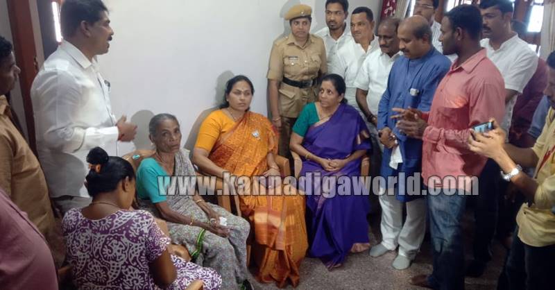 ಸುವರ್ಣ ತ್ರಿಭುಜ ಬೋಟ್ ಮಾಲೀಕ ಚಂದ್ರಶೇಖರ್ ಕೋಟ್ಯಾನ್ ಅವರ ಮನೆಗೆ ಮೊದಲು ಭೇಟಿ ನೀಡಿದ ಸಚಿವೆ ಬಳಿಕ ದಾಮೋದರ್ ಸಾಲ್ಯಾನ್ ಅವರ ಮನೆಗೆ ಭೇಟಿ ಕೊಟ್ಟು ಧೈರ್ಯ ಹೇಳಿದರು. ಈ ವೇಳೆ ಮಾತನಾಡಿದ ಸಚಿವರು, ನಾಪತ್ತೆಯಾದ ಹಡಗು ಮತ್ತು ಮೀನುಗಾರರ ಪತ್ತೆಗೆ ಕೇಂದ್ರ ಸರಕಾರ ಯಾವ ರೀತಿಯ ಕ್ರಮ ಕೈಗೊಂಡಿದೆ ಮತ್ತು ಭಾರತೀಯ ನೌಕಾಪಡೆ ಯಾವ ರೀತಿ ಸಹಾಯ ಮಾಡಿದೆ ಎಂಬುದರ ಬಗ್ಗೆ ಮಾಹಿತಿ ನೀಡಿದರು. ಮುಂದೆಯೂ ಇದೇ ರೀತಿ ಪತ್ತೆ ಕಾರ್ಯಕ್ಕೆ ಹೆಚ್ಚಿನ ವ್ಯವಸ್ಥೆ ಮಾಡುವ ಭರವಸೆ ನೀಡಿದ ರಕ್ಷಣಾ ಸಚಿವರು ಮನೆಯವರಿಗೆ ಸಾಂತ್ವಾನ ಹೇಳಿದರು.