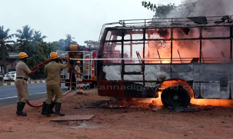 ಘಟನೆಯಿಂದ ಬಸ್ ಸಂಪೂರ್ಣ ಸುಟ್ಟು ಕರಕಲಾಗಿದ್ದು, ಬೆಂಕಿಯ ಕೆನ್ನಾಲಗೆ ಪಕ್ಕದಲ್ಲಿ ನಿಲ್ಲಿಸಿದ ಜೀಪೊಂದಕ್ಕೂ ತಗಲಿ ಜೀಪ್ ಕೂಡ ಬೆಂಕಿಗಾಹುತಿಯಾಗಿದೆ. ಬಳಿಕ ತಡವಾಗಿ ಆಗಮಿಸಿದ ಅಗ್ನಿಶಾಮಕ ದಳದ ಸಿಬ್ಬಂದಿಗಳು ಬೆಂಕಿ ನಂದಿಸಿದರು.