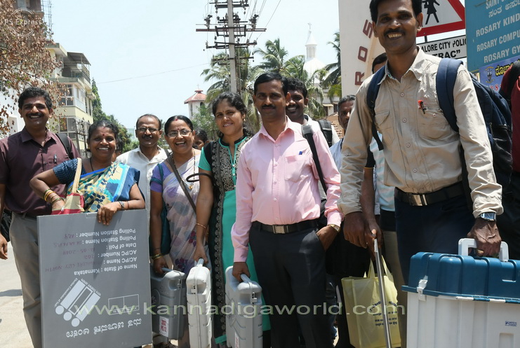 ಮಂಗಳೂರು, ಎಪ್ರಿಲ್.17 : ದಕ್ಷಿಣ ಕನ್ನಡ ಲೋಕಸಭಾ ಕ್ಷೇತ್ರದಲ್ಲಿ ಚುನಾವಣೆಗೆ ರಣರಂಗ ಸಜ್ಜುಗೊಂಡಿದೆ. ಚುನಾವಣಾ ಹಿನ್ನೆಲೆಯಲ್ಲಿ ಎಲ್ಲಾ ಪೂರ್ವಭಾವಿ ಸಿದ್ಧತೆಗಳು ಬಿರುಸಿನಿಂದ ನಡೆದಿದೆ. ಅಭ್ಯರ್ಥಿಗಳ ಹಣೆಬರಹ ಬರೆಯ ಬಲ್ಲ ಮತಯಂತ್ರಗಳು ಈಗಾಗಲೇ ಮತಗಟ್ಟೆಗಳನ್ನು ತಲುಪಿದೆ. ಮುಕ್ತ ಹಾಗೂ ನ್ಯಾಯಸಮ್ಮತ ಚುನಾವಣೆಗೆ ಆಯೋಗ ಸಕಲ ಸಿದ್ಧತೆ ಮಾಡಿಕೊಂಡಿದ್ದು ಚುನಾವಣಾ ಸಿಬ್ಬಂದಿ ಇವಿಎಂ, ವಿವಿಪ್ಯಾಟ್‌ಗಳೊಂದಿಗೆ ಮತಗಟ್ಟೆಗಳಿಗೆ ತೆರಳಿದ್ದಾರೆ.