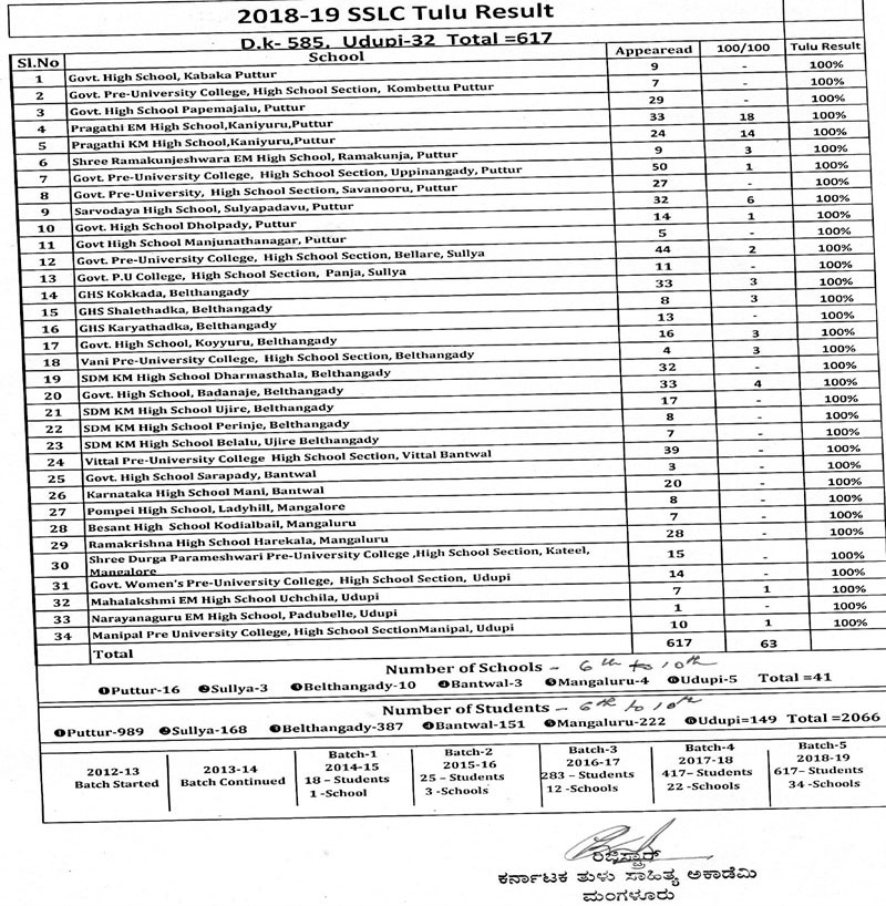 ತುಳುವಿನಲ್ಲಿ ಉತ್ತಮ ಸಾಧನೆ ದಾಖಲಿಸುವ ಮೂಲಕ ಶಾಲೆಗಳ ಫಲಿತಾಂಶ ಹಾಗೂ ಜಿಲ್ಲೆಯ ಒಟ್ಟು ಫಲಿತಾಂಶದಲ್ಲಿ ಏರಿಕೆಯಾಗಿರುವುದು ಕಂಡು ಬರುತ್ತದೆ. ಮುಂದಿನ ವರ್ಷಗಳಲ್ಲಿ ತುಳು ಪಠ್ಯ ಭೋದನೆಗೆ ಹೆಚ್ಚಿನ ಉತ್ತೇಜನ ನೀಡಲಾಗುವುದು. ತೃತೀಯ ಐಚ್ಛಿಕ ಭಾಷೆಯಾಗಿ ತುಳುವನ್ನು ಆಯ್ಕೆ ಮಾಡುವುದರಿಂದ ವಿದ್ಯಾರ್ಥಿಗಳು ಹೆಚ್ಚಿನ ಅಂಕ ಗಳಿಸಲು ಸಾಧ್ಯವಾಗುತ್ತಿದೆ ಎಂದು ತುಳು ಸಾಹಿತ್ಯ ಅಕಾಡಮಿಯ ಅಧ್ಯಕ್ಷ ಎ.ಸಿ ಭಂಡಾರಿ ತಿಳಿಸಿದ್ದಾರೆ.