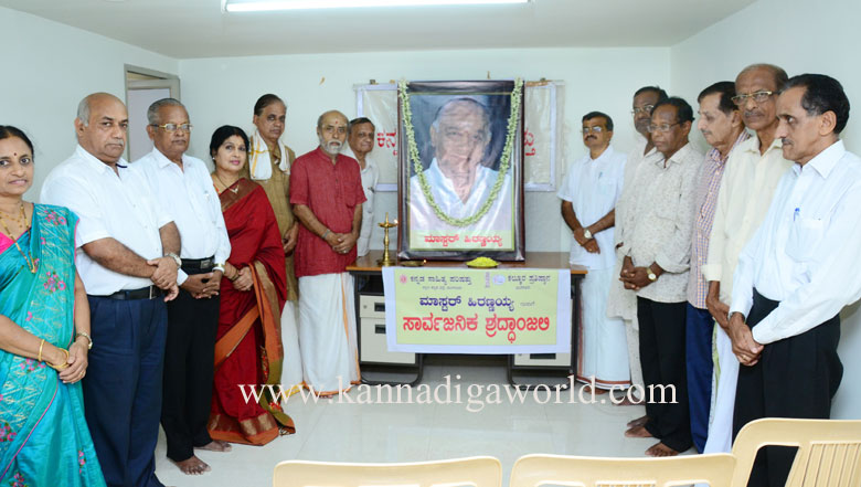 ಮಂಗಳೂರು : ದ.ಕ. ಜಿಲ್ಲಾಕನ್ನಡ ಸಾಹಿತ್ಯ ಪರಿಷತ್ತು ಮತ್ತುಕಲ್ಕೂರ ಪ್ರತಿಷ್ಠಾನದ ವತಿಯಿಂದ ದಿವಂಗತ ಮಾಸ್ಟರ್ ಹಿರಣ್ಣಯ್ಯ ಅವರಿಗೆ ಸಾರ್ವಜನಿಕ ಶ್ರದ್ಧಾಂಜಲಿ ಸಲ್ಲಿಸಲಾಯಿತು.