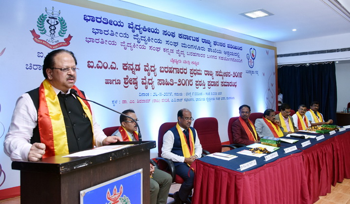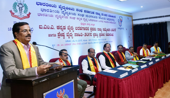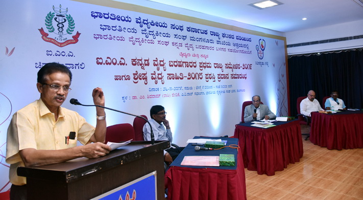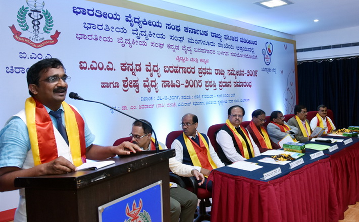 ನಗರದ ಭಾರತೀಯ ವೈದ್ಯಕೀಯ ಸಂಘ ಭವನದಲ್ಲಿ ಭಾರತೀಯ ವೈದ್ಯಕೀಯ ಸಂಘದ ರಾಜ್ಯ ಘಟಕದ ವತಿಯಿಂದ ಮಂಗಳೂರು ಶಾಖೆಯ ಆಶ್ರಯದಲ್ಲಿ ಕನ್ನಡ ವೈದ್ಯ ಬರಹಗಾರರ ಬಳಗದ ಸಹಯೋಗದೊಂದಿಗೆ ಆಯೋಜಿಸಿದ್ದ ಕನ್ನಡ ವೈದ್ಯ ಬರಹಗಾರರ ರಾಜ್ಯ ಸಮ್ಮೇಳನ ಉದ್ಘಾಟಿಸಿ ಮಾತನಾಡಿದರು.