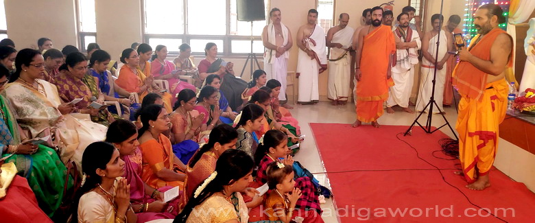ಕಾರ್ಯಕ್ರಮ ಆರಂಭಕ್ಕೂ ಮುನ್ನ ಶ್ರೀ ಸಚ್ಚಿದಾನಂದ ಜ್ಞಾನೇಶ್ವರ ಭಾರತೀ ಮಹಾಸ್ವಾಮೀಜಿಯವರನ್ನು ಪೂರ್ಣಕುಂಭದೊಂದಿಗೆ ಸ್ವಾಗತಿಸಲಾಯಿತು. ಬಳಿಕ ಸಮಾಜದ ವತಿಯಿಂದ ಸ್ವಾಮೀಜಿಯವರಿಗೆ ಪಾದುಕಾ ಪೂಜೆ ನಡೆಯಿತು. ಈ ಸಂದರ್ಭ ಅಥಿತಿಗಳು ಸ್ವಾಮೀಜಿಯವರನ್ನು ಶಾಲುಹೊದಿಸಿ, ಗೌರವಿಸಿ ಸ್ವಾಮೀಜಿಯವರಿಗೆ ಫಲಪುಷ್ಪ ಅರ್ಪಣೆ ಮಾಡಿದರು.