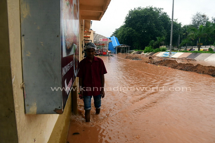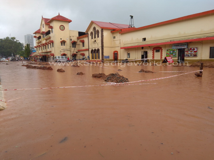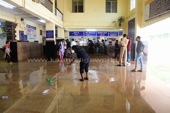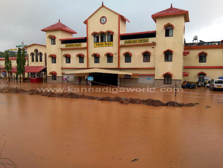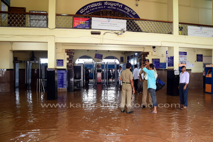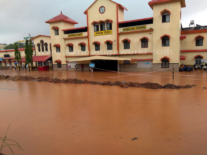 ಕಳೆದ ಮೂರು ದಿನಗಳಿಂದ ದಕ್ಷಿಣ ಕನ್ನಡ ಜಿಲ್ಲೆಯಾದ್ಯಾಂತ ಉತ್ತಮ ಮಳೆಯಾಗುತ್ತಿದ್ದು, ನಿರಂತರವಾಗಿ ಮಳೆ ಸುರಿಯುತ್ತಿರುವ ಹಿನ್ನೆಲೆಯಲ್ಲಿ ನಗರದ ತಗ್ಗುಪ್ರದೇಶಗಳು ಜಲಾವೃತಗೊಂಡಿದೆ .ಮಂಗಳೂರಿನಲ್ಲಿರುವ ಕೇಂದ್ರ ರೈಲು ನಿಲ್ದಾಣದೊಳಗೆ ಮಳೆ ನೀರು ನುಗ್ಗಿದೆ. ಟಿಕೆಟ್ ಕೌಂಟರ್ ಹೊರಗಡೆ ನೀರು ನಿಂತಿದ್ದು, ಅದನ್ನು ಹೊರಹಾಕಲು ಸಿಬ್ಬಂದಿಗಳು ಹರಸಾಹಸಪಡುವುದು ಕಂಡು ಬಂತು.