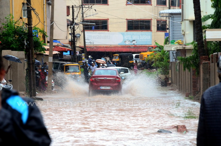 ದ.ಕ. ಜಿಲ್ಲಾದ್ಯಂತ ಮಳೆ ಬಿರುಸು ಪಡೆದಿದ್ದು, ಕೊಟ್ಟಾರ ಚೌಕಿಯಲ್ಲಿ ರಾಜಕಾಲುವೆಗಳು ತುಂಬಿ ಸಮೀಪದ ಮನೆಗಳಿಗೆ ನೀರು ನುಗ್ಗಿದೆ. ನಗರದ ಎಂಪೈರ್ ಮಾಲ್ ಸಮೀಪ, ಜೈಲು ರಸ್ತೆ, ಗುಜರಾತಿ ಶಾಲೆ ಬಳಿ, ಜ್ಯೋತಿ ವೃತ್ತದಲ್ಲಿ ಚರಂಡಿ ಅವ್ಯವಸ್ಥೆಯಿಂದಾಗಿ ರಸ್ತೆಯಲ್ಲೇ ನೀರು ನಿಂತಿದ್ದು, ಕೃತಕ ನೆರೆ ಸೃಷ್ಟಿಯಾಗಿದೆ. ಇದರಿಂದ ವಾಹನ ಸಂಚಾರಕ್ಕೂ ಕೆಲಕಾಲ ಅಡಚಣೆಯುಂಟಾಗಿತ್ತು. ಮಳೆ ನೀರು ನಿಂತು ಸಂಕಷ್ಟಕ್ಕೀಡಾದವರಿಗೆ ಅಗ್ನಿಶಾಮಕ ದಳ ನೆರವಾಯಿತು.