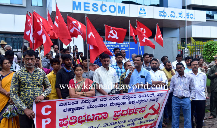 ಮಂಗಳೂರು : ವಿದ್ಯುತ್ ದರ ಏರಿಕೆ, ಹೆಚ್ಚುವರಿ ಡಿಪಾಸಿಟ್, ತಪ್ಪು ಲೆಕ್ಕಾಚಾರ ಮುಂತಾದ ಮೆಸ್ಕಾಂನ ಅವ್ಯವಸ್ಥೆಗಳ ವಿರುದ್ದ CPIM ನೇತ್ರತ್ವದಲ್ಲಿ ಶುಕ್ರವಾರ ನಗರದ ಮೆಸ್ಕಾಂ ಪ್ರಧಾನ ಕಚೇರಿಯೆದುರು ಪ್ರತಿಭಟನಾ ಪ್ರದರ್ಶನ ಜರುಗಿತು.