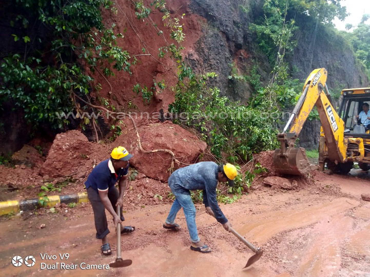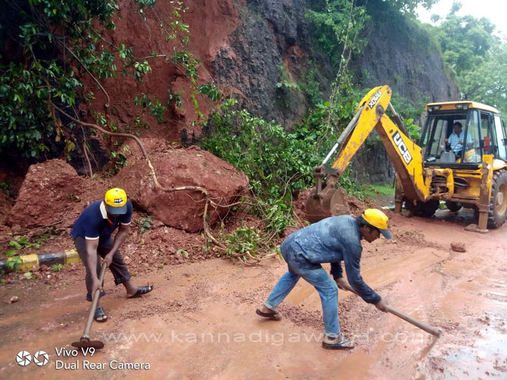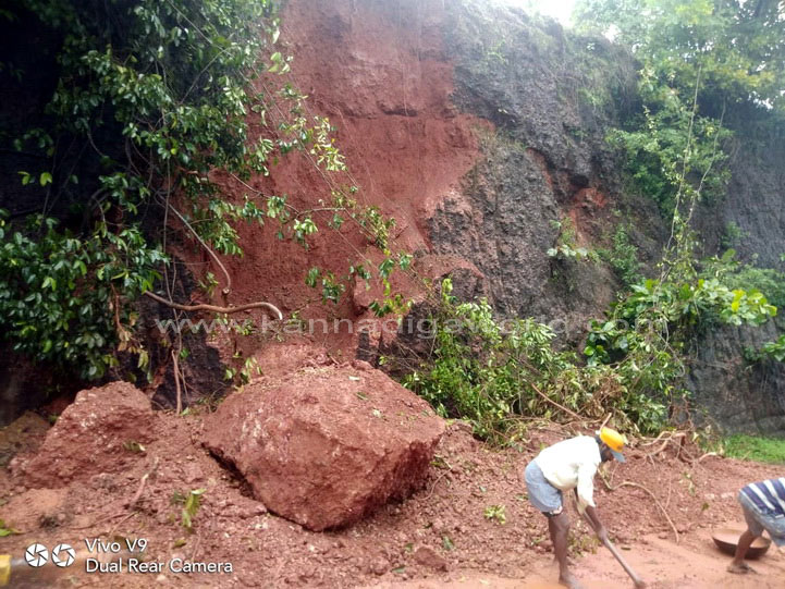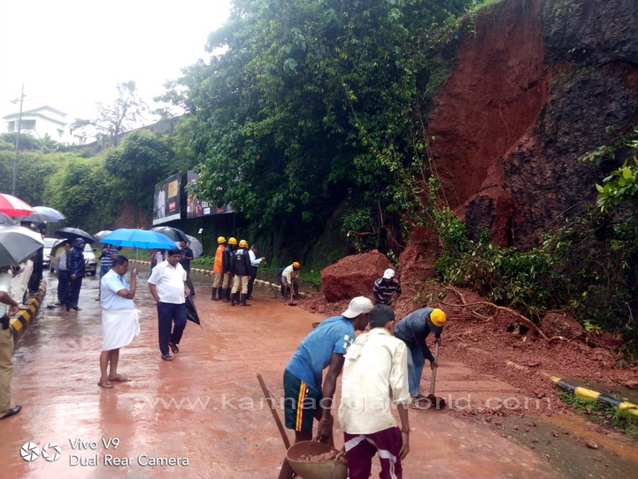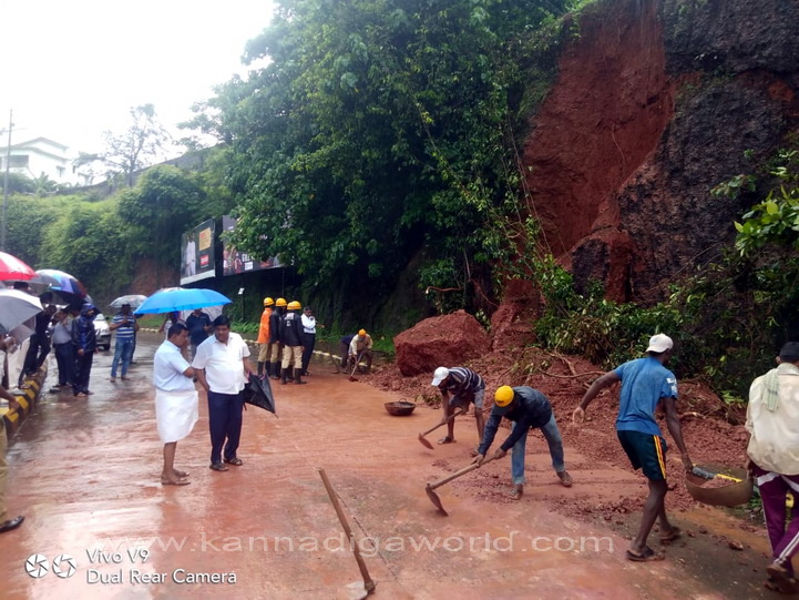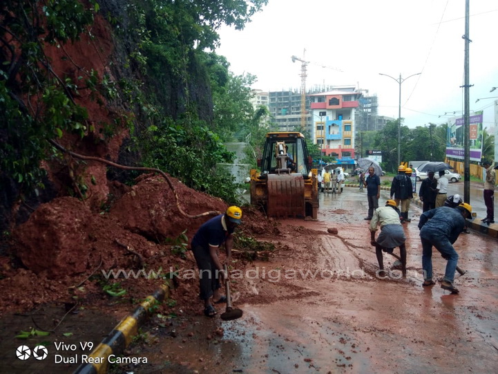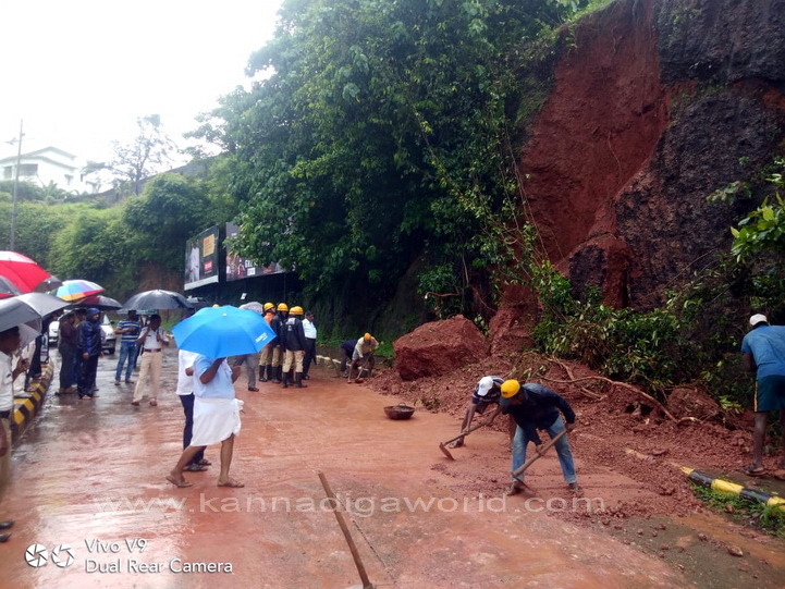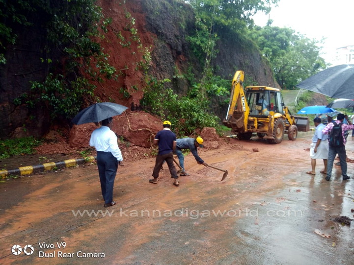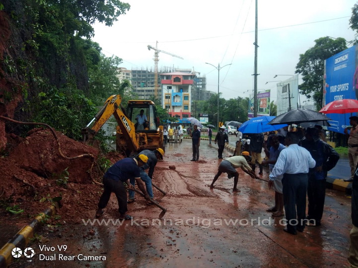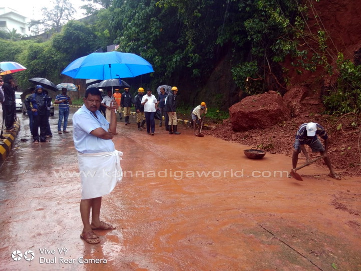 ನಗರದ ಕೆಪಿಟಿ ಸರ್ಕಲ್ ನಿಂದ ಬಿಜೈ ಕೆ‌ಎಸ್‌ಆರ್‌ಟಿಸಿ ಕಡೆಗೆ ಹೋಗುವ ರಸ್ತೆಯಲ್ಲಿರುವ ಸರ್ಕಿಟ್ ಹೌಸ್ ಹಿಂಭಾಗದ ಗುಡ್ಡ ಕುಸಿದು ರಸ್ತೆಗೆ ಬಿದ್ದು ಸಂಚಾರಕ್ಕೆ ಅಡ್ಡಿಯಾಗಿದೆ. ಗುಡ್ಡ ಕುಸಿಯುತ್ತಿದ್ದ ಸಂದರ್ಭ ಅದೇ ರಸ್ತೆಯಲ್ಲಿ ಆಯಂಬುಲೆನ್ಸ್ ಒಂದು ಸಂಚರಿಸುತ್ತಿದ್ದು, ಯಾವುದೇ ಹಾನಿಯಾಗಿಲ್ಲ. ಆದರೆ ಈ ವೇಳೆ ಈ ರಸ್ತೆಯಲ್ಲಿ ಸಂಚಾರಿಸುತಿದ್ದ ಬೈಕ್ ಸವಾರನೋರ್ವನಿಗೆ ಸಣ್ಣಪುಟ್ಟ ಗಾಯಗಳಾಗಿದ್ದು, ಅಪಾಯದಿಂದ ಪಾರಾಗಿದ್ದಾರೆ ಎಂದು ತಿಳಿದುಬಂದಿದೆ.