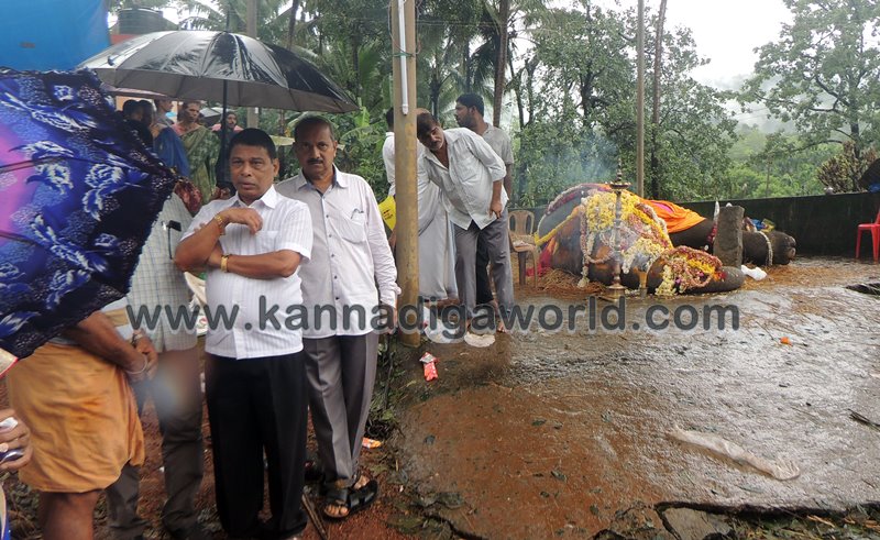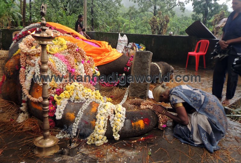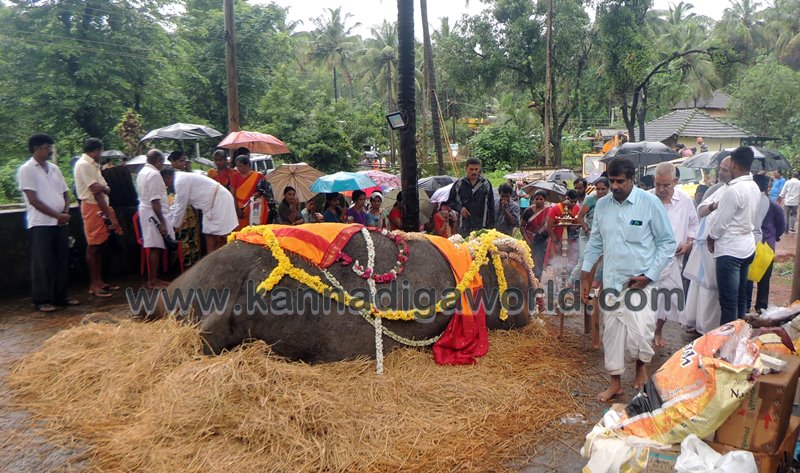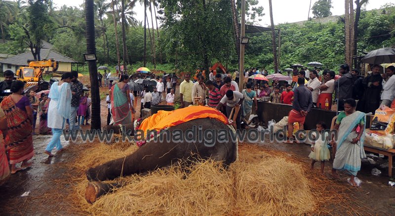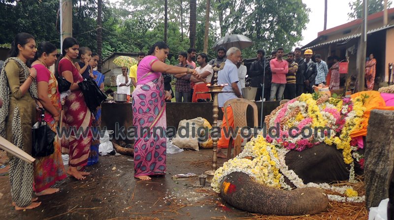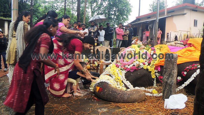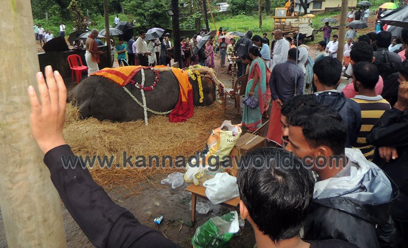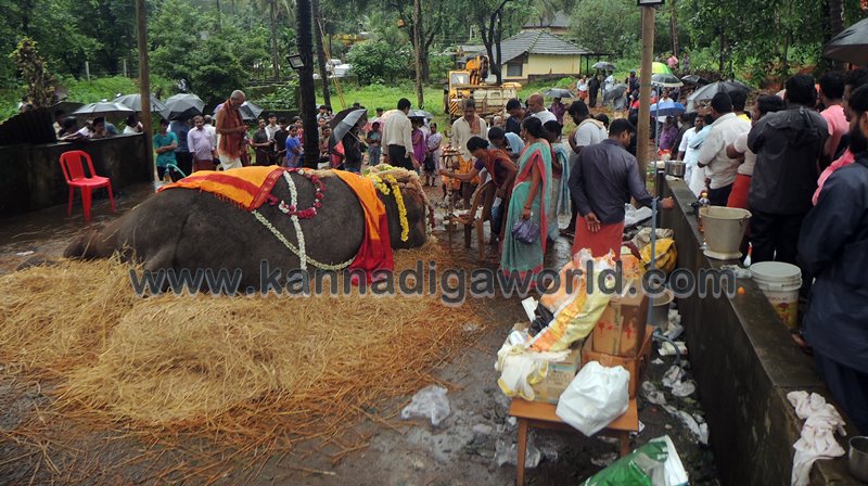 ಕುಂದಾಪುರ: ಕೊಲ್ಲೂರು ಶ್ರೀ ಮೂಕಾಂಬಿಕಾ ದೇವಸ್ಥಾನದಲ್ಲಿ ಸುಮಾರು ಇಪ್ಪತ್ತೆರಡು ವರ್ಷಗಳಿಂದ ಇದ್ದ ‘ಇಂದಿರಾ’ ಹೆಸರಿನ ಹೆಣ್ಣು ಸಲಗ ಮಂಗಳವಾರ ಇಹಲೋಕ ತ್ಯಜಿಸಿದ್ದು ಬುಧವಾರ ಬೆಳಿಗ್ಗೆನಿಂದ ಸಹಸ್ರಾರು ಮಂದಿ ಅಂತಿಮ ದರ್ಶನ ಪಡೆದರು. ವಿವಿಧ ಧಾರ್ಮಿಕ ಕ್ರಿಯೆಗಳು,ಇಂದಿರಾಳ ಮರಣೋತ್ತರ ಪರೀಕ್ಷೆ ಕಾರ್ಯವು ಸಂಜೆಯವರೆಗೂ ನಡೆಯಿತು. ಇಂದಿರಾ ಮರಣದ ಹಿನ್ನೆಲೆ ಕೊಲ್ಲೂರು ಭಾಗಶಃ ಬಂದ್ ಆಗಿತ್ತು. ಆಟೋ, ಜೀಪು ಸಂಚಾರ ಸ್ಥಗಿತಗೊಳಿಸಲಾಗಿತ್ತು. ಬಹುತೇಕ ಅಂಗಡಿ ಮುಂಗಟ್ಟುಗಳು ಮುಚ್ಚಿತ್ತು.