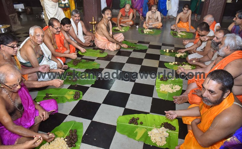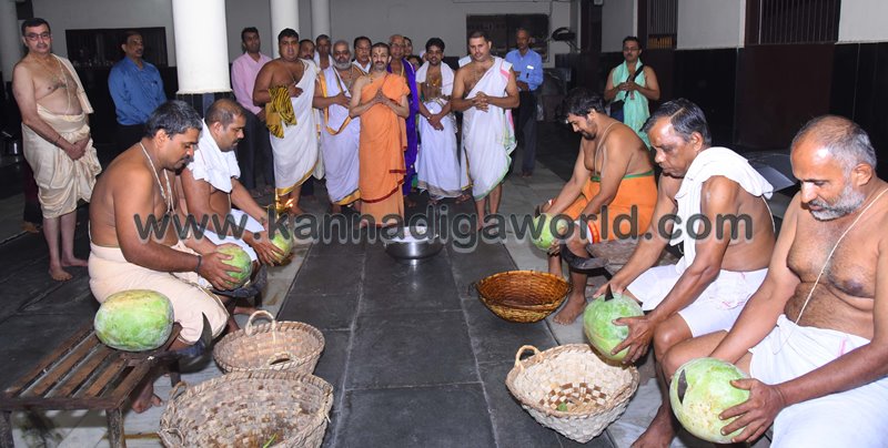 ಶ್ರೀ ಕೃಷ್ಣ ಮಠದಲ್ಲಿ ನಡೆಯುತ್ತಿರುವ ಶ್ರೀಕೃಷ್ಣ ಜಯಂತಿಯ ವಿಟ್ಲಪಿಂಡಿಯಂದು ಶ್ರೀ ಕೃಷ್ಣ ಮುಖ್ಯಪ್ರಾಣ ಸೇವಾ ಸಮಿತಿ ವತಿಯಿಂದ ನಡೆಯುವ ಅನ್ನಸಂತರ್ಪಣೆಗೆ ಪರ್ಯಾಯ ಪಲಿಮಾರು ಶ್ರೀ ವಿದ್ಯಾಧೀಶ ತೀರ್ಥ ಶ್ರೀಪಾದರು ಶ್ರೀ ಕೃಷ್ಣ ಮುಖ್ಯಪ್ರಾಣ ದೇವರ ಮುಂಭಾಗದಲ್ಲಿ ಪ್ರಾರ್ಥನೆ ನೆರವೇರಿಸಿದ ನಂತರ ಭೋಜನಶಾಲೆಯಲ್ಲಿ ತರಕಾರಿ ಹಚ್ಚುವ ಮುಹೂರ್ತ ನಡೆಯಿತು. ಶ್ರೀ ಕೃಷ್ಣ ಮುಖ್ಯಪ್ರಾಣ ಸೇವಾ ಸಮಿತಿಯ ಭುವನೇಂದ್ರ ಕಿದಿಯೂರು,ಯುವರಾಜ್ ಮಸ್ಕತ್ ಮೊದಲಾದವರು ಉಪಸ್ಥಿತರಿದ್ದರು.