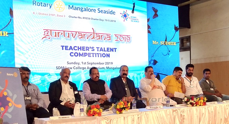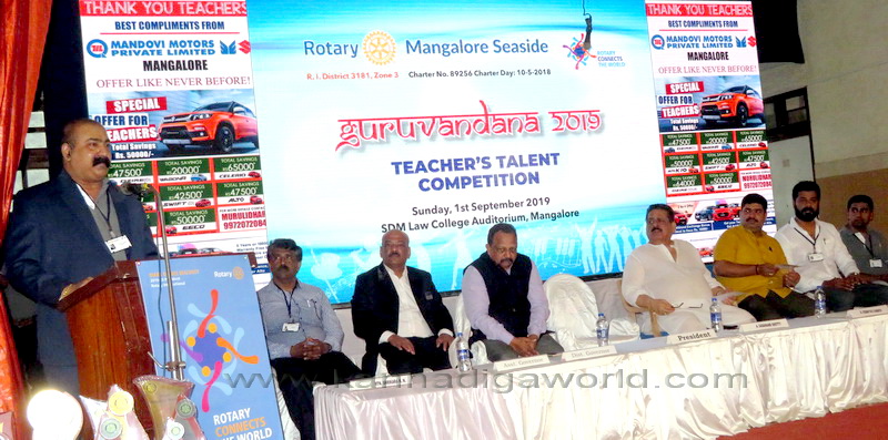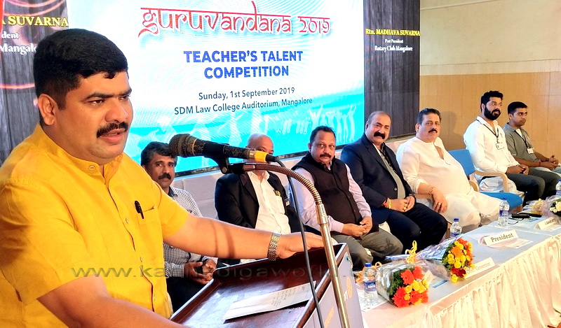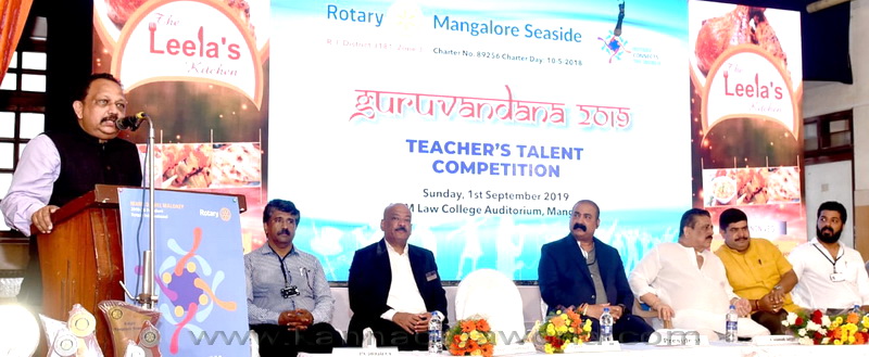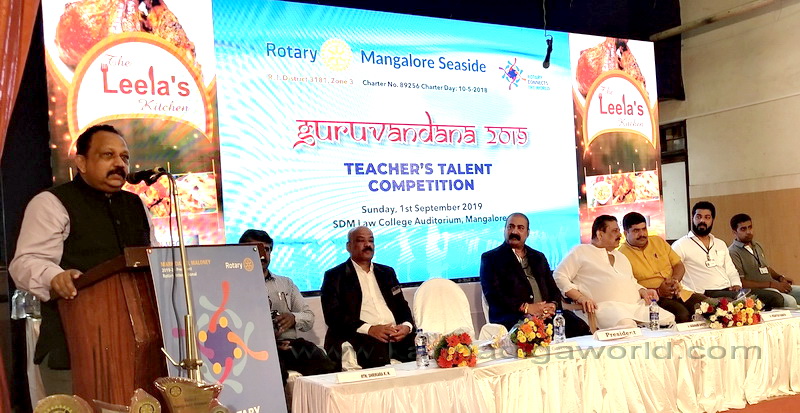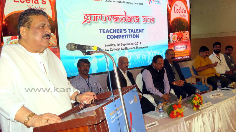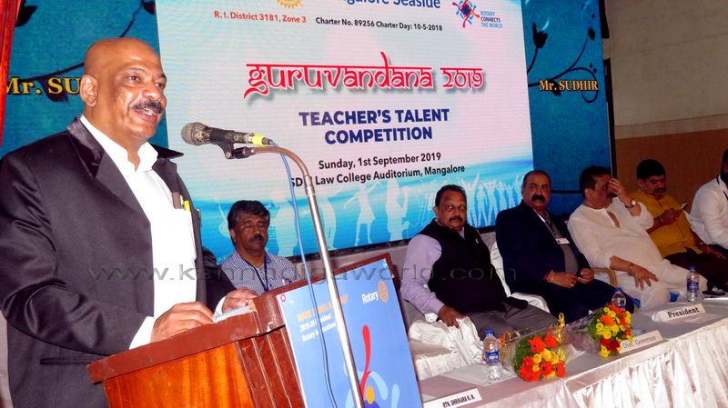 ಅವರು ಶಿಕ್ಷಕರ ದಿನಾಚರಣೆ ಪ್ರಯುಕ್ತ ವಾಗಿ ನಗರದ ರೋಟರಿ ಕ್ಲಬ್ ಮಂಗಳೂರು ಸೀಸೈಡ್ ವತಿಯಿಂದ ರವಿವಾರ ನಗರದ ಎಸ್ ಡಿ ಎಂ ಕಾನೂನು ಮಹಾವಿದ್ಯಾಲಯದ ಸಭಾಂಗಣದಲ್ಲಿ ಹಮ್ಮಿಕೊಳ್ಳಲಾದ ಶಿಕ್ಷಕರ ಪ್ರತಿಭಾನ್ವೇಷಣೆ ಸ್ಪರ್ಧೆ – ಗುರುವಂದನ 2019 ಕಾರ್ಯಕ್ರಮವನ್ನು ಉದ್ಘಾಟಿಸಿ ಮಾತನಾಡಿದರು.