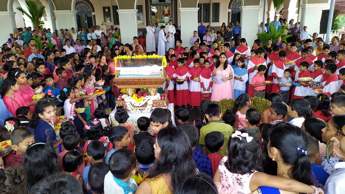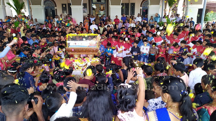ಮಾತೆ ಮರಿಯಮ್ಮರ ಬಾಲ ರೂಪಕ್ಕೆ ಮಕ್ಕಳಿಂದ ಪುಷ್ಪಾರ್ಚನೆ ನಡೆಯಿತು. ಮುಂಜಾನೆಯೇ ಭತ್ತದ ತೆನೆ ಮತ್ತು ಕಬ್ಬನ್ನು ಗುರಿಕಾರರು ಚರ್ಚ್ಗೆ ಮೆರವಣಿಗೆಯಲ್ಲಿ ಕೊಂಡೊಯ್ದರು. ಅಲ್ಲಿ ಧರ್ಮಗುರುಗಳು ತೆನೆ ಪೂಜೆ ನಡೆಸಿ ಭಕ್ತರಿಗೆ ಹಂಚಿದರು. ಭತ್ತದ ತೆನೆಯನ್ನು ಭಕ್ತಿಪೂರ್ವಕವಾಗಿ ಮನೆಗೆ ಕೊಂಡೊಯ್ದ ಕ್ರೈಸ್ತರು ದೇವರ ಪೀಠದ ಮೇಲಿರಿಸಿ ಪ್ರಾರ್ಥನೆ ಸಲ್ಲಿಸಿದರು.