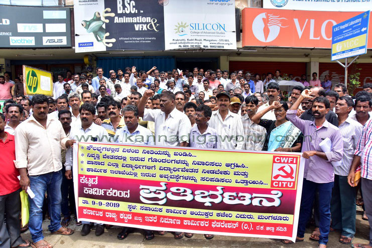 ಮಂಗಳೂರು : ವಿವಿಧ ಬೇಡಿಕೆಗಳಿಗೆ ಆಗ್ರಹಿಸಿ ಕಟ್ಟಡ ಕಾರ್ಮಿಕರಿಂದ ಪ್ರತಿಭಟನೆ