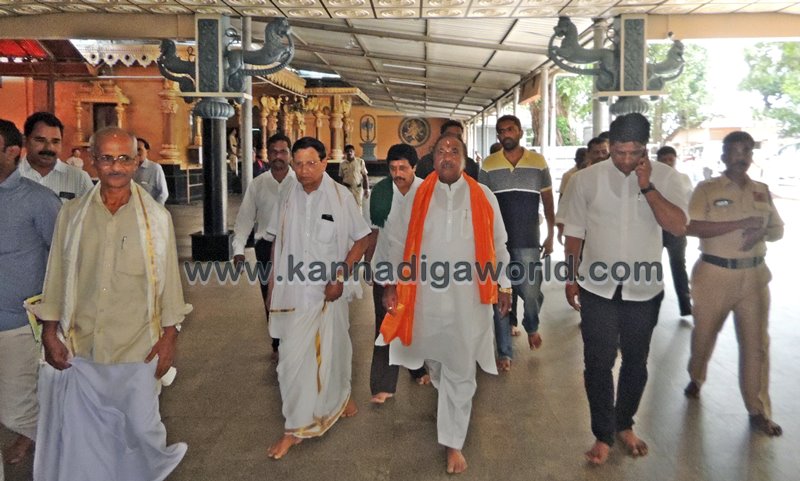 ಈ ಮೊದಲು ಮಂದರ್ತಿ ಶ್ರೀ ದುರ್ಗಾ ಪರಮೇಶ್ವರೀ ದೇವಸ್ಥಾನ ಭೇಟಿ ಹಾಗೂ ಚಂಡಿಕಾ ಹೋಮದ ಪೂರ್ಣಾಹುತಿಯಲ್ಲಿ ಪಾಲ್ಘೊಂಡು ಅಲ್ಲಿಯೇ ಅನ್ನಪ್ರಸಾದ ಸ್ವೀಕರಿಸಿದ್ದರು. ಆನೆಗುಡ್ಡೆ ಬೇಟಿ ಬಳಿಕ ಮಾರಣಕಟ್ಟೆ ಶ್ರೀ ಬ್ರಹ್ಮಲಿಂಗೇಶ್ವರನ ಸನ್ನಿಧಿಗೆ ಭೇಟಿ ನೀಡಿ ಪೂಜೆ ಸಲ್ಲಿಸಿದರು.