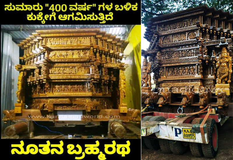 ಕುಕ್ಕೆ ಶ್ರೀ ಸುಬ್ರಹ್ಮಣ್ಯ ದೇವಸ್ಥಾನದ 400 ವರ್ಷಗಳ ಇತಿಹಾಸ ಹೊಂದಿದ ಹಳೆ ಬ್ರಹ್ಮರಥದ ಮಾದರಿಯನ್ನಾಗಿಟ್ಟುಕೊಂಡು ಇದೀಗ ಅತ್ಯಾಧುನಿಕ ತಂತ್ರಜ್ಞಾನದ ಮೂಲಕ ಕೋಟೇಶ್ವರ ಸಮೀಪದ ಶ್ರೀ ವಿಶ್ವಕರ್ಮ ಕರಕುಶಲ ಶಿಲ್ಪಕಲಾ ಶಾಲೆಯ ರಾಷ್ಟ್ರಪ್ರಶಸ್ತಿ ವಿಜೇತ ಶಿಲ್ಪಗುರು ಲಕ್ಷ್ಮೀನಾರಾಯಣ ಆಚಾರ್ಯ ಇವರ ನೇತೃತ್ವದಲ್ಲಿ ನಿರ್ಮಾಣಗೊಂಡಿದೆ.