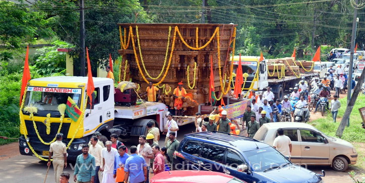 ಮಂಗಳೂರು, ಅಕ್ಟೋಬರ್.01 : ದಕ್ಷಿಣ ಕನ್ನಡ ಜಿಲ್ಲೆಯ ಪ್ರಮುಖ ನಾಗರಾಧಾನ ಕೇಂದ್ರವಾದ ಕುಕ್ಕೆ ಶ್ರೀ ಸುಬ್ರಹ್ಮಣ್ಯ ದೇವಸ್ಥಾನಕ್ಕೆ ಬೆಂಗಳೂರಿನ ಉದ್ಯಮಿಗಳಾದ ಎನ್.ಮುತ್ತಪ್ಪ ರೈ ದೇರ್ಲ ಮತ್ತು ಅಜಿತ್ ಶೆಟ್ಟಿ ಕಡಬ ಇವರು ಅರ್ಪಣೆ ಮಾಡಲಿರುವ ನೂತನ ಬ್ರಹ್ಮರಥ ಸೆ.30ರಂದು ಬೆಳಗ್ಗೆ 8ಕ್ಕೆ ಕೋಟೇಶ್ವರದಿಂದ ಬೃಹತ್ ಟ್ರಕ್ ಮೂಲಕ ಹೊರಟಿದ್ದು, ಕೋಟೇಶ್ವರ ಉಡುಪಿ ಮೂಲ್ಕಿ ಮಾರ್ಗವಾಗಿ ಆಗಮಿಸಿ ರಾತ್ರಿ ಮಂಗಳೂರು ತಲುಪಿದೆ.