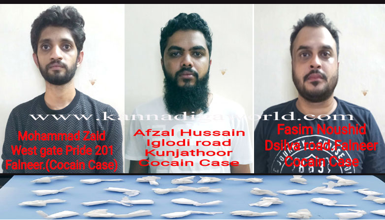 ಬಂಧಿತರನ್ನು ಪಳ್ನೀರ್ ನಿವಾಸಿಗಳಾದ ಫಾಸೀಮ್ ನೌಷಿಬ್ (25), ಮಹಮ್ಮದ್ ಝಾಹಿದ್ (26) ಹಾಗೂ ಮಂಜೇಶ್ವರ ಕುಂಜೆತ್ತೂರು ನಿವಾಸಿ ಅಪ್ಜಲ್ ಹುಸೈನ್ (28) ಎಂದು ಹೆಸರಿಸಲಾಗಿದೆ.