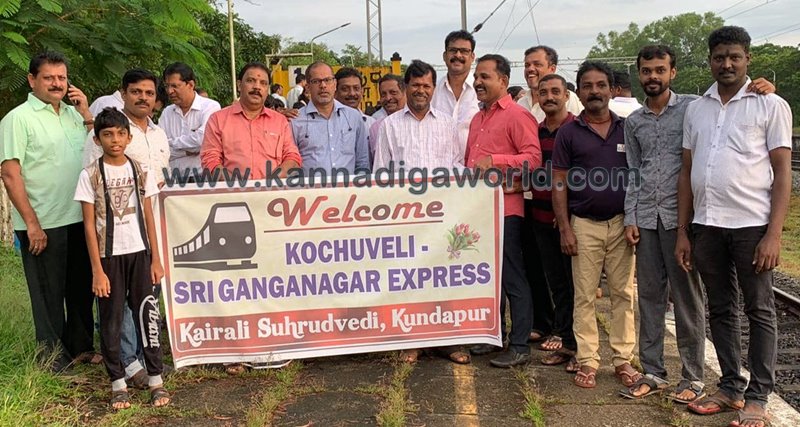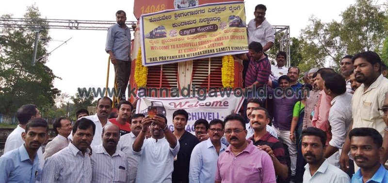 ಕುಂದಾಪುರ: ಕುಂದಾಪುರ ರೈಲು ಪ್ರಯಾಣಿಕರ ಹಿತರಕ್ಷಣ ಸಮಿತಿಯ ವತಿಯಿಂದ ಭಾನುವಾರ ಕೊಚುವೇಲಿ ಗಂಗಾನಗರ ರೈಲು ನಿಲುಗಡೆ ಆರಂಭದ ಹಿನ್ನೆಲೆ ಇಲ್ಲಿನ ಮೂಡ್ಲಕಟ್ಟೆ ರೈಲು ನಿಲ್ದಾಣದಲ್ಲಿ ಸ್ವಾಗತ ಕೋರಲಾಯಿತು.