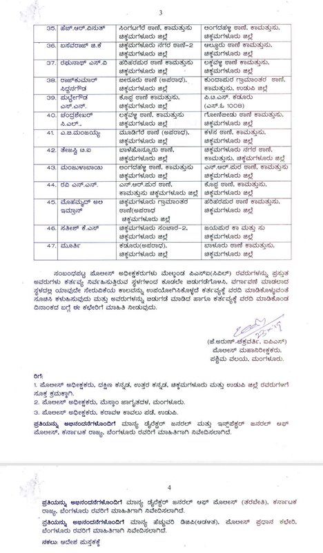 ಇನ್ನು ಬಂಟ್ವಾಳ ನಗರ ಅಪರಾಧ ವಿಭಾಗದಿಂದ ಸುಧಾಕರ್ ತೋನ್ಸೆಯವರನ್ನು ಹಿರಿಯಡಕ ಠಾಣೆಗೆ, ಸಿಎಸ್ಪಿ ಹೆಜಮಾಡಿಯಿಂದ ಶೇಖರ್ ಅವರನ್ನು ಉಡುಪಿ ಸಂಚಾರ ಠಾಣೆಗೆ, ನೀತು ಗುಡೆ ಅವರನ್ನುಉತ್ತರಕನ್ನಡದ ಮಂಕಿ ಠಾಣೆಯಿಂದ ಮಲ್ಪೆಗೆ ವರ್ಗಾಯಿಸಲಾಗಿದೆ. ಎಲ್ಲಾ 47 ಮಂದಿ ಪಿಎಸ್ಐಯವರ ವರ್ಗಾವಣೆ ಆದೇಶ ಇಲ್ಲಿದೆ ನೋಡಿ.