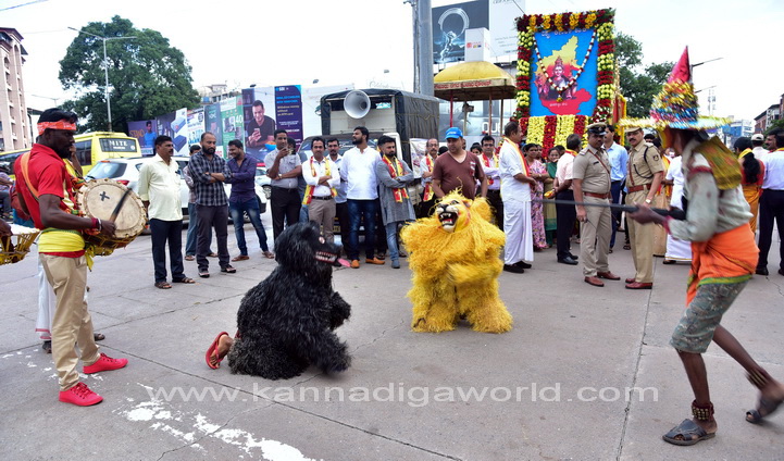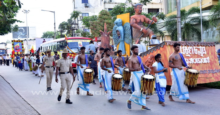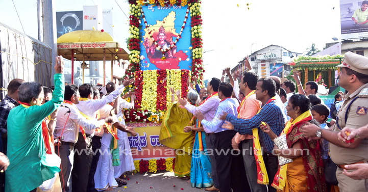 ಮಂಗಳೂರು, ನವೆಂಬರ್.1: ಕನ್ನಡರಾಜ್ಯೋತ್ಸವದ ಪ್ರಯುಕ್ತ ದಕ್ಷಿಣ ಕನ್ನಡ ಜಿಲ್ಲಾಡಳಿತ, ದ.ಕ.ಜಿಲ್ಲಾ ಕನ್ನಡ ಸಾಹಿತ್ಯ ಪರಿಷತ್ ಹಾಗೂ ವಿವಿಧ ಸಂಘ ಸಂಸ್ಥೆಗಳ ಸಹಯೋಗದೊಂದಿಗೆ ಶುಕ್ರವಾರ ಬೆಳಗ್ಗೆ ನಗರದ ಅಂಬೇಡ್ಕರ್ ವೃತ್ತದಿಂದ ಹಮ್ಮಿಕೊಂಡ ಕನ್ನಡ ರಾಜ್ಯೋತ್ಸವದ ವೈಭವಪೂರ್ಣವಾದ ಮೆರವಣಿಗೆ ದ.ಕ. ಜಿಲ್ಲಾಕನ್ನಡ ಸಾಹಿತ್ಯ ಪರಿಷತ್‌ನ‌ ಅಧ್ಯಕ್ಷ‌ಎಸ್. ಪ್ರದೀಪ ಕುಮಾರ ಕಲ್ಕೂರ‌ ಅವರ ನೇತೃತ್ವದಲ್ಲಿ ನಗರದ ಮುಖ್ಯರಸ್ತೆಯಲ್ಲಿ ಸಾಗಿಬಂದು ಕೇಂದ್ರ ಮೈದಾನತಲುಪಿತು.