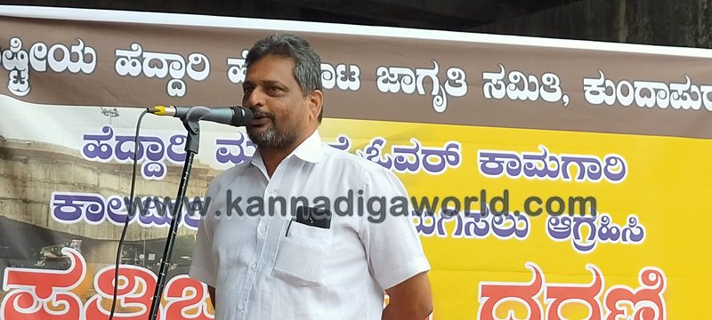 ಕುಂದಾಪುರ ಶಾಸ್ತ್ರಿ ಸರ್ಕಲ್ ಬಳಿಯಲ್ಲಿ ನಿರ್ಮಾಣವಾಗುತ್ತಿರುವ ಫ್ಲೈ ಓವರ್ನ ವಿಳಂಭ ಕಾಮಗಾರಿಯನ್ನು ವಿರೋಧಿಸಿ ಮಂಗಳವಾರ ಬೆಳಿಗ್ಗೆ ರಾಷ್ಟ್ರೀಯ ಹೆದ್ದಾರಿ ಹೋರಾಟ ಸಮಿತಿ ನೇತ್ರತ್ವದಲ್ಲಿ ನಡೆದ ಧರಣಿ ಹಾಗೂ ಪ್ರತಿಭಟನಾ ಸಭೆಯಲ್ಲಿ ಅವರು ಮಾತನಾಡಿದರು.