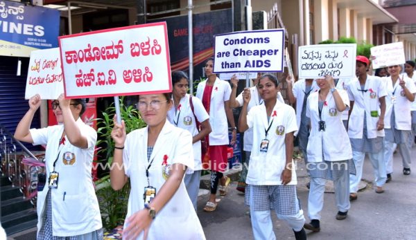 ಏಡ್ಸ್ ತಡೆಗಟ್ಟುವಿಕೆ ಮತ್ತು ನಿಯಂತ್ರಣಕ್ಕಾಗಿ ಮಂಗಳೂರಿನಲ್ಲಿ ವಿಧ್ಯಾರ್ಥಿಗಳಿಂದ ಜಾಗೃತಿ ಜಾಥ
