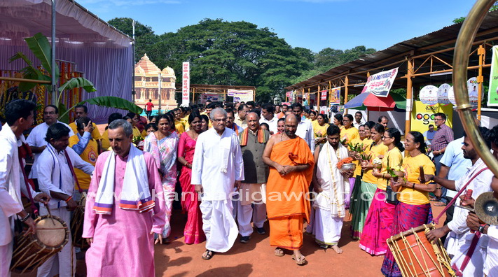 ಮಂಗಳೂರು: ಗೋವನಿತಾಶ್ರಯ ಟ್ರಸ್ಟ್‌ ಮಂಗಳೂರು, ವಿಶ್ವ ಹಿಂದೂ ಪರಿಷತ್‌ ಸೇವಾ ಪ್ರಕಲ್ಪದ ವತಿಯಿಂದ ಟ್ರಸ್ಟ್‌ನ 20 ಸಂವತ್ಸರಗಳ ಸಾರ್ಥಕ ಗೋ ಸೇವೆಯ ಅಂಗವಾಗಿ ನಗರದ ಕೇಂದ್ರ ಮೈದಾನದಲ್ಲಿ ಹಮ್ಮಿಕೊಳ್ಳಲಾದ ಎರಡು ದಿನಗಳ ಬೃಹತ್‌ ಗೋಮಂಡಲ ಕಾರ್ಯಕ್ರಮವನ್ನು ಶನಿವಾರ ಶ್ರೀ ಸುಬ್ರಹ್ಮಣ್ಯ ಮಠಾಧೀಶರಾದ ಶ್ರೀ ವಿದ್ಯಾಪ್ರಸನ್ನತೀರ್ಥ ಸ್ವಾಮೀಜಿಯವರ  ಉಪಸ್ಥಿತಿ ಯಲ್ಲಿ ಶ್ರೀ ಕ್ಷೇತ್ರ ಧರ್ಮಸ್ಥಳ ಧರ್ಮಾಧಿಕಾರಿ ಡಾ| ಡಿ. ವೀರೇಂದ್ರ ಹೆಗ್ಗಡೆ ಉದ್ಘಾಟಿಸಿದರು.