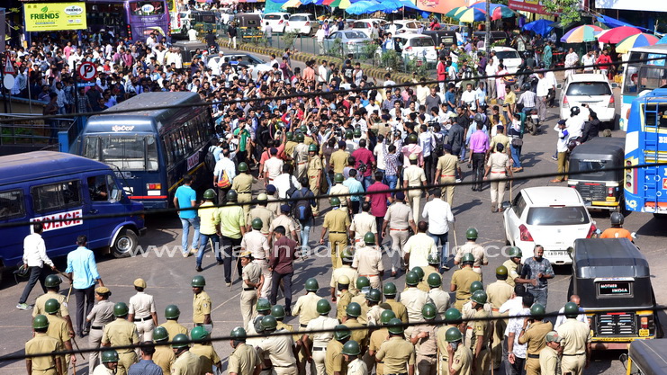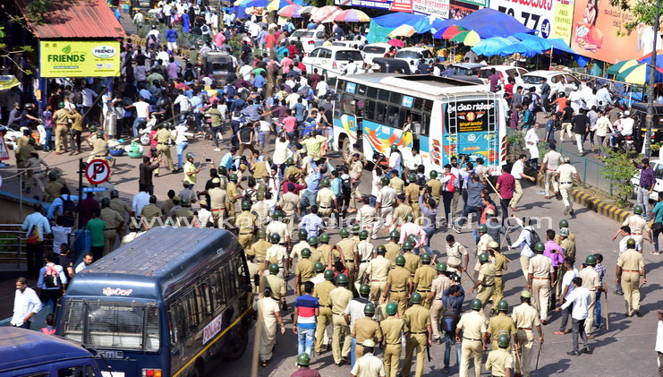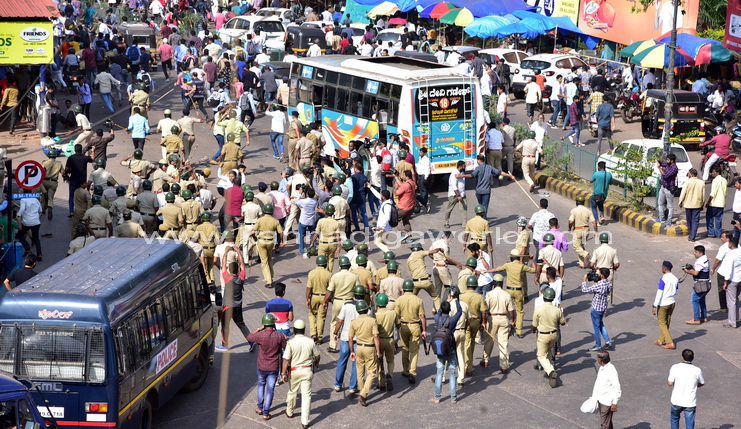 ಮಂಗಳೂರಿನಲ್ಲಿ ಲಾಠಿಚಾರ್ಜ್ – ಅಶ್ರುವಾಯು ಪ್ರಯೋಗ – ಸ್ಟೇಟ್ ಬ್ಯಾಂಕ್ ಪರಿಸರದಲ್ಲಿ ಜನಜೀವನ ಅಸ್ತವ್ಯಸ್ತ