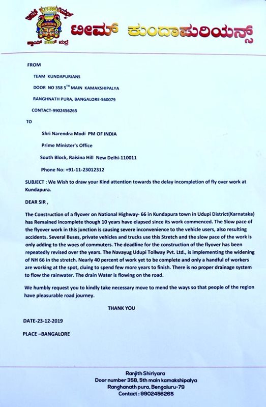 ಉಡುಪಿ ಜಿಲ್ಲಾಧಿಕಾರಿಗಳು, ಉಡುಪಿ ಭಾಗದ ಶಾಸಕರು, ಉಡುಪಿ ಜಿಲ್ಲಾ ಉಸ್ತುವಾರಿ ಸಚಿವರು, ಉಡುಪಿ-ಚಿಕ್ಕಮಗಳೂರು ಲೋಕಸಭಾ ಸಂಸದರು ಸೇರಿದಂತೆ ಮಾನ್ಯ ಮುಖ್ಯಮಂತ್ರಿಗಳು ಮತ್ತು ಉಪ ಮುಖ್ಯಮಂತ್ರಿಗಳು, ಕೇಂದ್ರ ನಾಯಕರು ಮತ್ತು ಪ್ರಧಾನ ಮಂತ್ರಿಗಳಿಗೂ ಪತ್ರ ಕಳುಹಿಸಲಾಯಿತು. ಜೊತೆಗೆ ಕಾಮಗಾರಿ ವಹಿಸಿಕೊಂಡ ನವಯುಗ ಕಂಪೆನಿಗೂ ಪತ್ರ ಕಳುಹಿಸಲಾಗಿದೆ. ಈ ಮೂಲಕ ಕಾಮಗಾರಿಯನ್ನ ಶೀಘ್ರದಲ್ಲೇ ಮುಕ್ತಾಯಗೊಳಿಸಬೇಕೆಂದು ಮನವಿ ಸಲ್ಲಿಸಲಾಯಿತು. ಸಿಲಿಕಾನ್ ಸಿಟಿಯಲ್ಲಿದ್ದು, ತಮ್ಮೂರಿನ ಸಮಸ್ಯೆ ಬಗ್ಗೆ ಬೆಳಕು ಚೆಲ್ಲುವ ಈ ವಿನೂತನ ಕಾರ್ಯಕ್ರಮದಲ್ಲಿ ಟೀಂ ಕುಂದಾಪುರಿಯನ್ಸ್ ತಂಡದ ಎಲ್ಲಾ ಸದಸ್ಯರು ಭಾಗಿಯಾಗಿದ್ದರು.