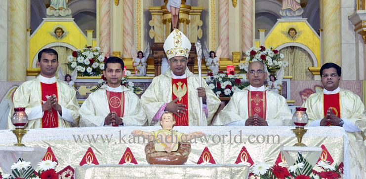 ಮಂಗಳೂರಿನ ರೊಜಾರಿಯೋ ಕೆಥೆಡ್ರಲ್ನಲ್ಲಿ ರಾತ್ರಿ ನಡೆದ ಸಂಭ್ರಮದ ಬಲಿಪೂಜೆಯಲ್ಲಿ ಬಿಷಪ್ ರೆ.ಡಾ.ಪೀಟರ್ ಪಾವ್ಲ್ ಸಲ್ಡಾನ್ಹಾ, ಉಡುಪಿ ಕಲ್ಯಾಣಪುರ ಕೆಥೆಡ್ರಲ್ ಬಿಷಪ್ ರೆ.ಡಾ.ಜೆರಾಲ್ಡ್ ಐಸಾಕ್ ಲೋಬೋ ಅವರು ನೇತೃತ್ವ ವಹಿಸಿ ಹಬ್ಬದ ಸಂದೇಶ ಸಾರಿದರು. ಈ ಸಂದರ್ಭದಲ್ಲಿ ಕೆಥೆಡ್ರಲ್ನ ರೆಕ್ಟರ್ ರೆ.ಜೆ.ಬಿ,ಕ್ರಾಸ್ತಾ, ರೆ.ಲಾರೆನ್ಸ್ ಡಿ’ಸೋಜಾ ಹಾಗೂ ಇತರ ಗುರುಗಳು ಉಪಸ್ಥಿತಿಯಿದ್ದರು.