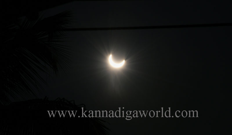 ಮಂಗಳೂರಿನಲ್ಲಿ ಸರ ಸುಮಾರು 9:24ರಿಂದ 9:25ರ ಅವಧಿಯಲ್ಲಿ ಕಂಕಣ ರೂಪದಲ್ಲಿ ಸೂರ್ಯ ಗ್ರಹಣ ಗೋಚರಿಸಿದೆ. ಸೇರಿದ್ದ ಜನರು ಹರ್ಷೋದ್ಘಾರದೊಂದಿಗೆ ಸೂರ್ಯ- ಚಂದ್ರನ ನೆರಳು ಬೆಳಕಿನ ಆಟವನ್ನು ಆಸ್ವಾದಿಸಿದರು. ಕಂಕಣ ಸೂರ್ಯಗ್ರಹಣ ನಡೆಯುತ್ತಿದ್ದಂತೆ ಹವಾಮಾನದಲ್ಲೂ ಬದಲಾವಣೆ ಕಂಡು ಬಂತು. ನೆರಳಿನ ಜತೆ ತಂಪಾದ ವಾತಾವರಣದಲ್ಲಿ ಖಗೋಳದ ಕೌತುಕ ವೀಕ್ಷಕರಿಗೆ ಮುದ ನೀಡಿತು. ಮಂಗಳೂರಿನಲ್ಲಿ ಶೇ.93ರಷ್ಟು ಪ್ರಮಾಣದಲ್ಲಿ ಕಂಕಣ ರೂಪ ಕಂಡುಬಂದಿದ್ದರೆ, ಉಷ್ಣಾಂಶ 28 ಡಿಗ್ರಿ ಸೆಲ್ಸಿಯಸ್ ಆಗಿತ್ತು.