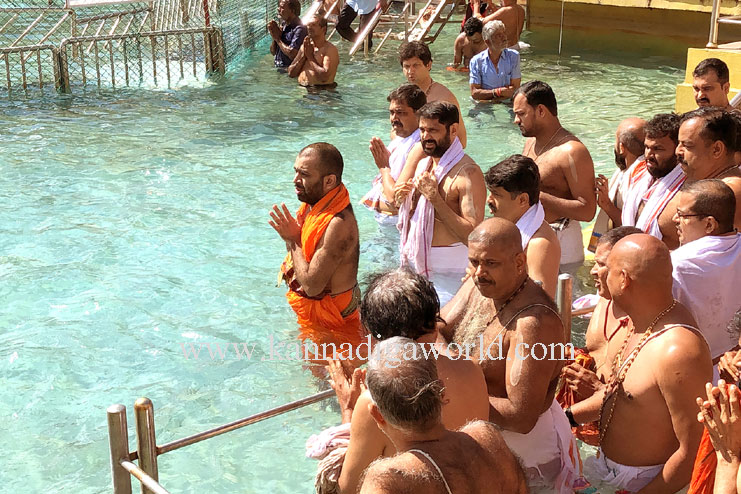 ಮಂಗಳೂರು : ಶ್ರೀ ಕಾಶೀ ಮಠ ಸಂಸ್ಥಾನದ ಮಠಾಧೀಶರಾದ ಶ್ರೀಮದ್ ಸಂಯಮಿಂದ್ರ ತೀರ್ಥ ಸ್ವಾಮೀಜಿಯವರು ತಿರುಮಲ ತಿರುಪತಿ ದೇವಸ್ಥಾನದ ಶ್ರೀ ದೇವರ ಪವಿತ್ರ ಪುಷ್ಕರಣಿಯಲ್ಲಿ ಸೂರ್ಯ ಗ್ರಹಣ ಪ್ರಯುಕ್ತ ತೀರ್ಥ ಸ್ನಾನ ಗುರುವಾರ ನೆರವೇರಿತು.
