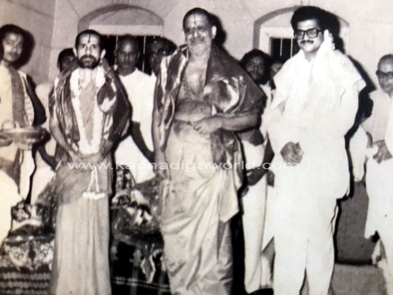 ಮಂಗಳೂರು/ ಉಡುಪಿ : ಮುಖ್ಯಪ್ರಾಣ ಐಕ್ಯ ಶ್ರೀ ಕಾಶಿ ಮಠ ಸಂಸ್ಥಾನದ ಸದ್ಗುರು ಶ್ರೀಮದ್ ಸುಧೀಂದ್ರ ತೀರ್ಥ ಸ್ವಾಮೀಜಿ ಯವರು 1950 ಹಾಗು 1980 ರ ಸಂದರ್ಭದಲ್ಲಿ ಉಡುಪಿ ಶ್ರೀ ಕೃಷ್ಣ ಭೇಟಿ ನೀಡಿದ ಸಂದರ್ಭದಲ್ಲಿ ಡಿಸೆಂಬರ್ 29ರಂದು ರವಿವಾರ ಮುಖ್ಯಪ್ರಾಣ ಐಕ್ಯ ಪೇಜಾವರ ವಿಶ್ವೇಶ ತೀರ್ಥ ಶ್ರೀ ಗಳವರು ಮಠಕ್ಕೆ ಬರಮಾಡಿ ಕೊಳ್ಳುವ ಸನ್ನಿವೇಶ, ಈ ಸಂದರ್ಭದಲ್ಲಿ ಧರ್ಮಸ್ಥಳ ಧರ್ಮಾಧಿಕಾರಿ ಶ್ರೀ ವೀರೇಂದ್ರ ಹೆಗ್ಗಡೆಯವರ ಉಪಸ್ಥಿಯನ್ನು ಸಹ ನೆನಪಿಸಬಹುದಾದ ವಿಶೇಷ ಚಿತ್ರವನ್ನು ಇಲ್ಲಿ ನಮ್ಮ ಓದುಗರಿಗಾಗಿ ಪ್ರಕಟಿಸಲಾಗಿದೆ.