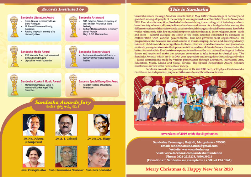 2. ಸಂದೇಶ ಕೊಂಕಣಿ ಸಾಹಿತ್ಯ ಪ್ರಶಸ್ತಿ- ಶ್ರೀ ವಲ್ಲಿ ವಗ್ಗ (ಶ್ರೀ ವಲೇರಿಯನ್ ಡಿ’ಸೋಜ)