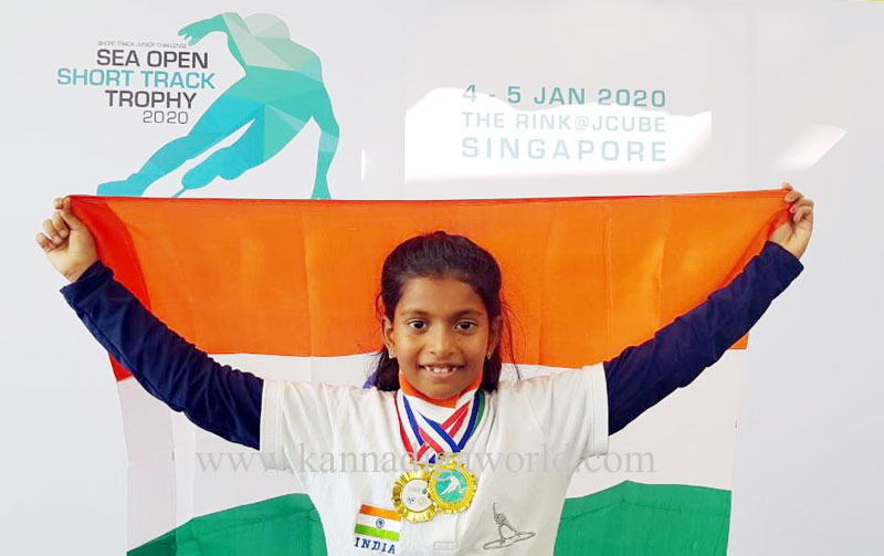 ಮಂಗಳೂರು: ಸಿಂಗಾಪುರ ಐಸ್ ಸ್ಕೇಟಿಂಗ್ ಅಸೋಸಿಯೇಷನ್ ಸಿಂಗಾಪುರದಲ್ಲಿ ಆಯೋಜಿಸಿದ ಅಂತರಾಷ್ಟ್ರೀಯ ಮಟ್ಟದ ಸೌತ್ ಈಸ್ಟ್ ಏಪ್ಯಾನ್ ಓಪನ್ ಶಾರ್ಟ್ ಟ್ರಾಕ್ ಟ್ರೋಪಿ-2020 ಐಸ್ ಸ್ಕೇಟಿಂಗ್ ಚಾಂಪಿಯನ್ ಶಿಪ್ ನಲ್ಲಿ ಭಾರತವನ್ನು ಪ್ರತಿನಿಧಿಸಿದ್ದ ಮಂಗಳೂರಿನ ಅನಘಾ ಎರಡು ಚಿನ್ನದ ಪದಕ ಪಡೆದು ದೇಶಕ್ಕೆ ಕೀರ್ತಿ ತಂದಿದ್ದಾರೆ.