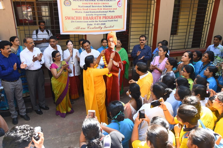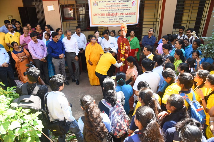 ಮಂಗಳೂರು : ಮಂಗಳೂರಿನ ಮಾತಾ ಅಮೃತಾನಂದಮಯಿ ಆಶ್ರಮದ ವತಿಯಿಂದ ಅಮಲ ಭಾರತ ಸ್ವಚ್ಚತಾ ಜನ ಜಾಗರಣ ಯಜ್ಞ ಹಮ್ಮಿಕೊಳ್ಳಲಾಯಿತು.ಮಂಗಳೂರು ವಿಶ್ವವಿದ್ಯಾಲಯದ ರಾಷ್ಟ್ರೀಯ ಸೇವಾ ಯೋಜನೆಯ ಯುವರೆಡ್ ಕ್ರಾಸ್ ಹಾಗೂ ಎಂ ಆರ್ ಪಿ ಎಲ್ ಇವರ ಸಹಭಾಗಿತ್ವದಲ್ಲಿ ಜರುಗಿದ ಈ ಸ್ವಚ್ಚತಾ ಜನ ಜಾಗರಣ ಯಜ್ಞಕ್ಕೆ ಅಮ್ಮನವರ ಅನುಗ್ರಹಕ್ಕಾಗಿ ಪ್ರಾರ್ಥನೆಗೈದು ,ಸ್ವಾಮಿ ವಿವೇಕಾನಂದರ ಭಾವಚಿತ್ರಕ್ಕೆ ಮಾಲಾರ್ಪಣೆ ಮಾಡುವ ಮೂಲಕ ಮಂಗಳೂರಿನ ಮಾತಾ ಅಮೃತಾನಂದಮಯಿ ಮಠದ ಮುಖ್ಯಸ್ಥರಾದ ಬ್ರಹ್ಮಚಾರಿಣಿ ಮಂಗಳಾಮೃತ ಚೈತನ್ಯ ಚಾಲನೆ ನೀಡಿದರು.
