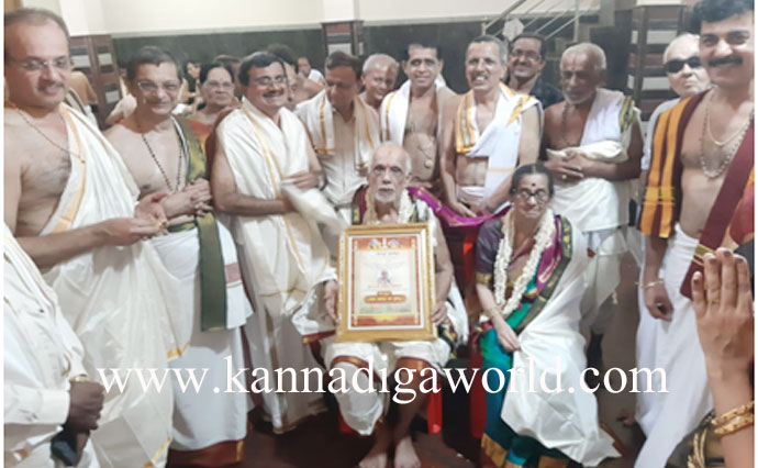 ಮಂಗಳೂರು : ಚತುರ್ವೇದ ಪಾರಂಗತ, ಘನವಿದ್ವಾಂಸ ಶ್ರೀ ಗಣಪತಿ ಆಚಾರ್ಯ ಕದ್ರಿ ಇವರಿಗೆ ಇವರ 85ನೇ ವರ್ಷದಾಚರಣೆಯ ಸಂದರ್ಭ ಕದ್ರಿ ಕಂಬಳ ರಸ್ತೆ ಶ್ರೀ ಗೋಪಾಲಕೃಷ್ಣ ಮಠದಲ್ಲಿ ಇತ್ತೀಚೆಗೆ ಕಲ್ಕೂರ ಪ್ರತಿಷ್ಠಾನದ ವತಿಯಿಂದ ಕಲ್ಕೂರ ವೇದವಾರಿಧಿ ಸಿರಿ ಪ್ರಶಸ್ತಿ ನೀಡಿ ಗೌರವಿಸಲಾಯಿತು.