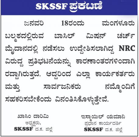 ಅನುಮತಿ ನಿರಾಕರಣೆ : ಇಂದಿನ ಪೌರತ್ವ ಕಾಯ್ದೆ ವಿರುದ್ಧದ ಪ್ರತಿಭಟನಾ ಸಮಾವೇಶ ರದ್ದು