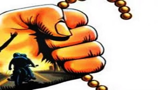 ಕುಂದಾಪುರ: ಕುಂದಾಪುರ ನಗರದಲ್ಲಿರುವ ಸರ್ಕಾರಿ ಪದವಿಪೂರ್ವ ಕಾಲೇಜ್ ಬಳಿ ಸೋಮವಾರ ಹಾಡು ಹಗಲಲ್ಲೇ ಬೈಕಲ್ಲಿ ಬಂದು ಅಪರಿಚಿತರಿಬ್ಬರು ಪೊಲೀಸರೆಂದು ಗುರುತು ಚೀಟಿ ತೋರಿಸಿ ೬೦ ಸಾವಿರ ಮೌಲ್ಯದ ಚಿನ್ನಾಭರಣ ದೋಚಿ ಪರಾರಿಯಾಗಿದ್ದಾರೆ.