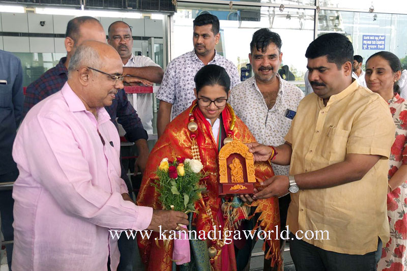 ಮಂಗಳೂರು : ಗೌರವಾನ್ವಿತ ರಾಷ್ಟ್ರಪತಿಗಳಿಂದ ಬಾಲ ಪುರಸ್ಕಾರ ಪಡೆದ ಮೂರ್ಜೆ ಸುನಿತಾ ಪ್ರಭು ಅವರನ್ನು ಇಂದು ಮಧ್ಯಾಹ್ನ ಮಂಗಳೂರು ಅಂತರಾಷ್ಟ್ರೀಯ ವಿಮಾನ ನಿಲ್ದಾಣದಲ್ಲಿ ಶಾಸಕ ಡಿ.ವೇದವ್ಯಾಸ್ ಕಾಮತ್ ಅವರು ಸ್ವಾಗತಿಸಿದರು.