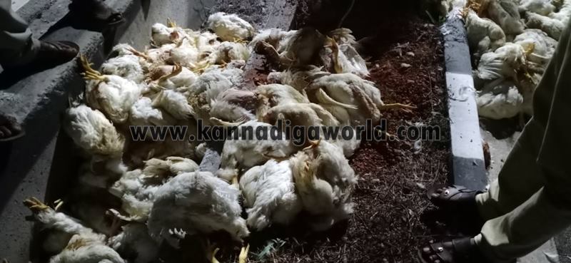 ಕುಂದಾಪುರ: ರಾಷ್ಟ್ರೀಯ ಹೆದ್ದಾರಿಯ ಡಿವೈಡರ್ ಸಮೀಪದ ಲೈಟ್ ಕಂಬಕ್ಕೆ ಡಿಕ್ಕಿ ಹೊಡೆದು ಲಾರಿ ಪಲ್ಟಿ ಹೊಡೆದ ಪರಿಣಾಮ ಲಾರಿಯೊಳಕ್ಕಿದ್ದ ಸಾವಿರಾರು ಕೋಳಿಗಳು ಸತ್ತ ಘಟನೆ ಬೈಂದೂರು ತಾಲೂಕಿನ ಅರೆಹೊಳೆ ಬೈಪಾಸ್ ಬಳಿ ಭಾನುವಾರ ಬೆಳಿಗ್ಗೆನ ಜಾವ ೨.೩೦ರ ಸುಮಾರಿಗೆ ನಡೆದಿದೆ.
