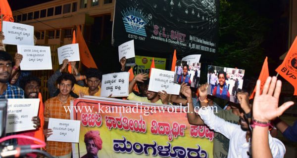 ಎಬಿವಿಪಿ ಪ್ರತಿಭಟನೆ: ಅಮೂಲ್ಯ ಲಿಯೋನ್ ಭಾವಚಿತ್ರ ಸುಟ್ಟು ಆಕ್ರೋಶ ವ್ಯಕ್ತಪಡಿಸಿದ ಪ್ರತಿಭಟನಕಾರರು.
