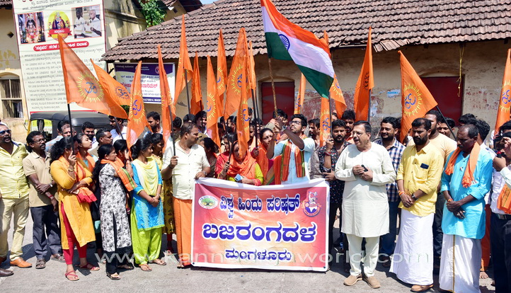 ಮಂಗಳೂರು: ಸಿಎಎ ವಿರೋಧಿ ಸಮಾವೇಶದಲ್ಲಿ ಅಮೂಲ್ಯ ಎನ್ನುವ ಯುವತಿ ಪಾಕಿಸ್ತಾನ ಜಿಂದಾಬಾದ್ ಘೋಷಣೆ ಕೂಗಿರುವುದನ್ನು ಖಂಡಿಸಿ ವಿಹಿಂಪ , ಬಜರಂಗದಳ ನೇತೃತ್ವದಲ್ಲಿ ಮಗರದ ಕದ್ರಿ ಮಲ್ಲಿಕಟ್ಟೆ ವೃತ್ತದಲ್ಲಿ ಪ್ರತಿಭಟನೆ ನಡೆಯಿತು.