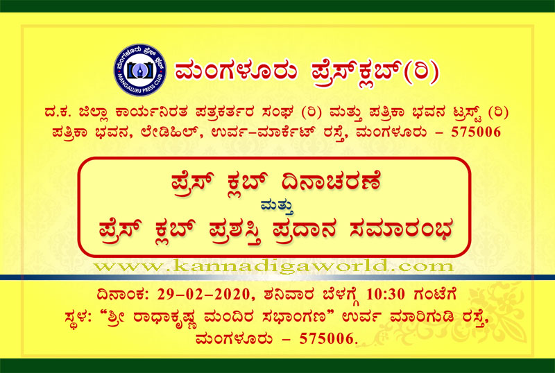 ಮಂಗಳೂರು, ಫೆಬ್ರವರಿ.28 : ಮಂಗಳೂರು ಪ್ರೆಸ್ ಕ್ಲಬ್ ವತಿಯಿಂದ ಪ್ರೆಸ್ ಕ್ಲಬ್ ದಿನಾಚರಣೆ ಮತ್ತು ಪ್ರೆಸ್ ಕ್ಲಬ್ ಪ್ರಶಸ್ತಿ ಪ್ರದಾನ ಸಮಾರಂಭ ಫೆ.29ರಂದು ಬೆಳಗ್ಗೆ 10.30ಕ್ಕೆ ನಗರದ ಉರ್ವ ಮಾರಿಗುಡಿ ರಸ್ತೆಯ ರಾಧಾಕೃಷ್ಣ ಮಂದಿರ ಸಭಾಂಗಣದಲ್ಲಿ ನಡೆಯಲಿದೆ.